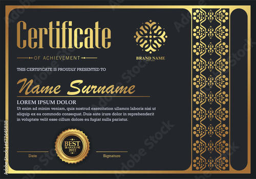 Luxury black and gold certificate with gold frame color