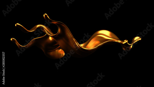 Luxury elegant splash liquid gold. 3d illustration, 3d rendering.