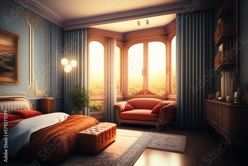 bedchamber, bed, interior, room, hotel, home, furniture, house, design, lamp, window, luxury, apartment, pillow, wall, architecture, decor, light, sofa, indoor, comfortable, table, curtain, contemporary, nobody