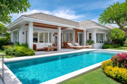 villa, pool, luxury, modern, tropical, vacation, house, real estate, garden, lifestyle, exterior, architecture, home, resort, travel, property, summer, water, sunny, blue, sky, holiday, swimming, residential, contemporary, design, landscape, living, beautiful, nobody, bungalow, private, elegant, exclusive, relaxation, paradise, destination, exotic, tranquil, serene, roomy, comfort, green, nature, light, dream, escape, wealthy