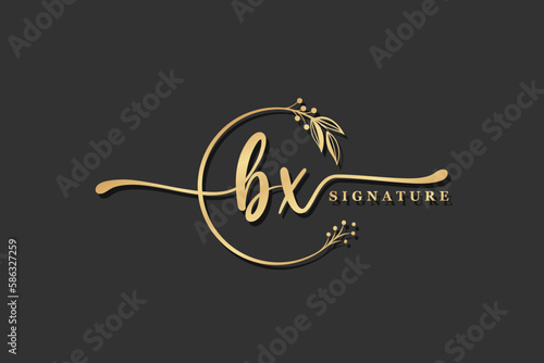 luxury signature initial bx logo design isolated leaf and flower