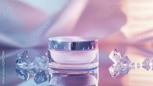 jar, cream, skin, luxury, reflective, ice, crystal, cosmetic, beauty, product, skincare, elegant, glasses, moisturiser, treatment, container, care, body, health, shiny, surface, pink, smooth, light, clean, modern, wellness, rejuvenation, background, nobody, freshness, hydratation, cosmetic, merchandise, item, object, still, life, studio, indoor