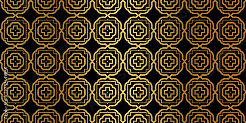 Luxury Traditional Ornamental Design. Modern Seamless Geometry Pattern. Vector Illustration. For Interior Design, Printing, Web And Textile Design. Black gold color