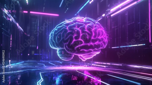 Machine Intelligence Concept with Floating 3D Hologram