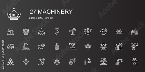 machinery, icon, set, vector, robot, industrial, industry, tractor, gear, tool, conveyer, symbol, design, technology, isolated, machine, signs, illustration, line, manufacturing, production, mechanical, outline, hand, concept, intelligence, science, arm, chips, future, cyborg, robotic, tech, android, futuristic, control, artificial, graphic, white