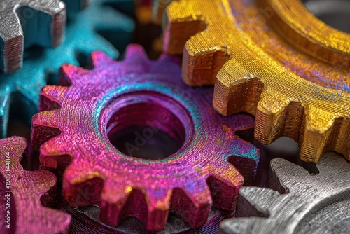 gear, colourful, macro, closeup, interlocking, cog, circular, mechanical, metal, chrome, brushed metal, rainbow, hue, vibrant, bright, texture, reflections, lighting, abstract, still life, engineering, technology, precision, motion, rotation, pattern, symmetry, composition, industrial, metallic, machinery, cogwheel, mechanism, colours, hue, gradient, shadow, depth, field, detail, dynamic, arrangement, color palette, interconnection
