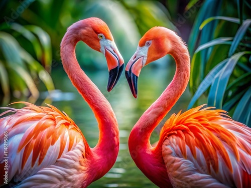 Macro Photography: Flamingo Love - Close-Up Romantic Bird Couple, Pink Feathers, Wildlife Romance, Nature's Embrace