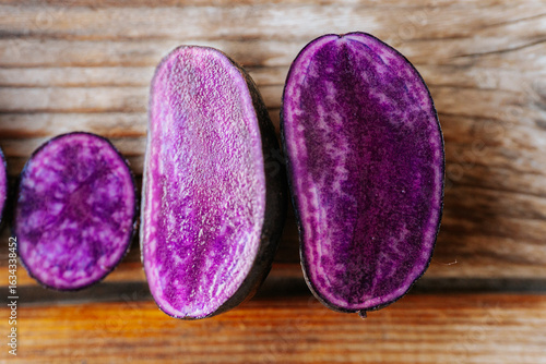 colours, cooking, crop, culinary, cut, detail, diet, earthy, farming, fiber, food, fresh, fresh cut, healthy, ingredient, interior, kitchen, macro, moisture, natural, alimentary, organic, peeled, potato, produce, purple, raw, raw food, root, rustic, sliced, starch, surface, texture, tuber, uncooked, vegan, vegetable, vibrant, vibrant color, high-coloured, wholesome, wooden