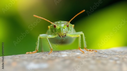 Macro Shot of Bright Green Grasshopper on a Leaf : Generative AI