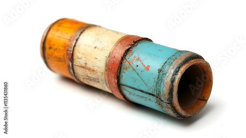 toy, artillery, shell, macro, colourful, worn, design, texture, plastic, vintage, isolated, blue, orange, red, cylindrical, playful, children, decorative, retro, fun, collectable, detailed, bright, unique
