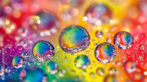 Macro Shot of Rainbow Colored Oil Bubbles on Colorful Background Capturing Abstract and Surreal Artistry : Generative AI