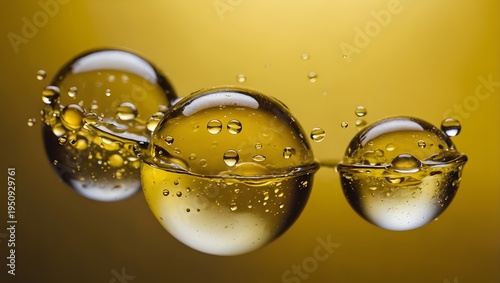 oil, bubble, bubble, droplet, droplet, liquid, macro, abstract, background, yellow, gold, transparent, semitransparent, glossy, shine, fluid, texture, pattern, sphere, round, floating, suspension, gradient, bright, vibrant, minimal, clean, modern, aesthetic, composition, copy space, cosmetic, skincare, beauty, science, laboratory, chemistry, organic, smooth, soft, light, highlight, shadow, detail, closeup, photo