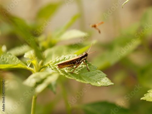 Macrophotography of insects on green leaves and flowers