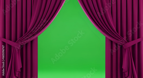 magenta, curtain, parted, green, chroma, key, use, case, theatre, stage, presentation, background, studio, screen, fabric, drape, textile, material, indoor, interior, design, decoration, elegant, luxury, velvet, smooth, texture, event, show, performance, art, entertainment, rendering, visual, effect, film, video, production, digital, graphic, virtual, set, isolated
