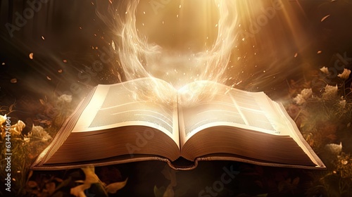 Magic open book, bible. AI generation
