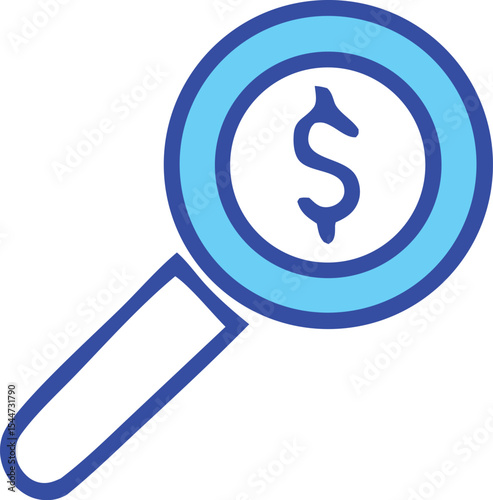 Magnifying glass icon featuring a dollar sign for financial research and investment analysis