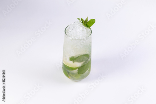 Mahito cocktail in a glass on a light background.