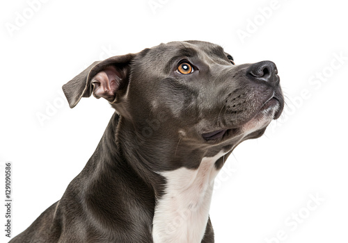 Majestic American Pit Bull Terrier Portrait Against White Background