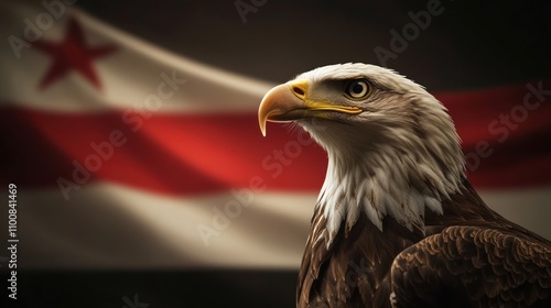 eagle, bald, american, bird, wildlife, nature, flag, patriotic, freedom, liberty, symbol, power, animal, predator, majestic, wild, avian, feathered, national, country, emblem, pride, strength, courage, independence, america, united, state, commonwealth, history, heritage, sovereignty, authority, dignity, gaze, profile, intense, sharp, sharpened, detail, feather, beak, eye, head, wing, background, blurred, dark, dramatic