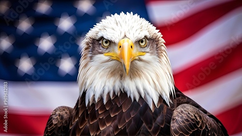 Majestic Bald Eagle against American Flag, patriotic symbol for national pride and freedom