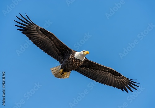 Majestic Bald Eagle Soaring Freely in a Clear Blue Sky.