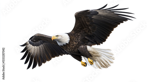 Majestic bald eagle soaring with wings spread wide