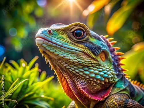 Majestic Big Dragon Lizard basking under sunlight in a vibrant natural habitat with lush greenery