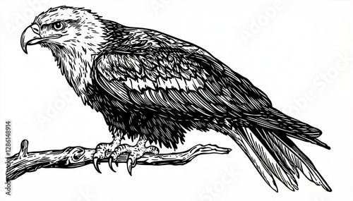 Majestic Cartoon Eagle Monochrome Illustration, Bold Line Work with Fierce Gaze and Spread Wings, Heroic Symbol for Branding or Apparel