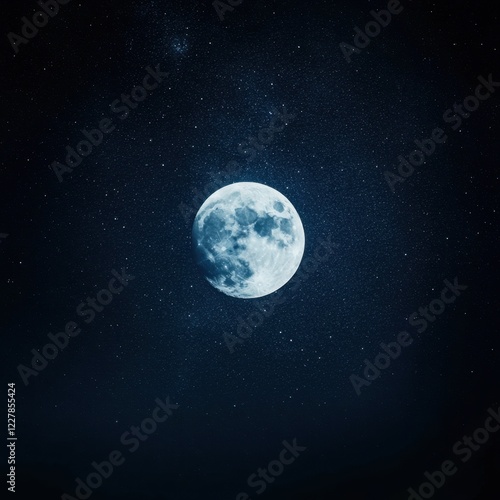 Majestic Full Moon Illuminating Starry Night Sky in Deep Space