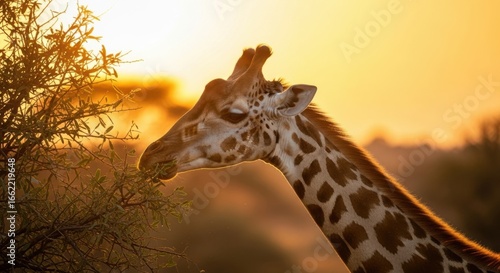 Majestic Giraffe Feeding Under the Golden African Sunrise