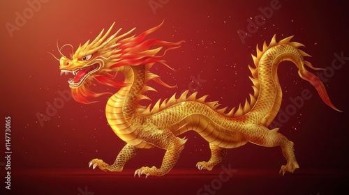 dragon, chinese, gold, red, background, majestic, soaring, mythical, creature, oriental, culture, art, fantasy, design, graphic, symbol, power, strength, legendary, festive, celebration, new, year, luck, prosperity, auspicious, holiday, traditional, intricate, detail, vibrant, dynamic, pose, elegant, beast
