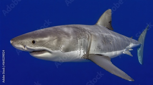 Majestic Great White Shark Swimming Gracefully in Clear Blue Ocean Water