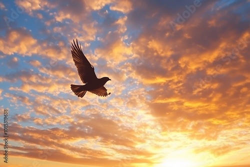 Majestic Hawk in Flight Against a Stunning Sunset Sky
