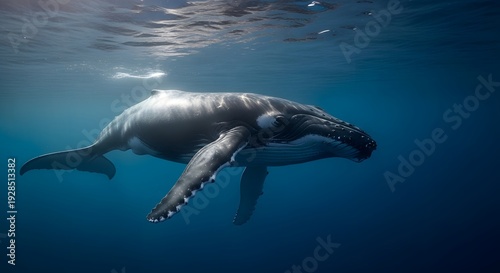 Majestic humpback whale swimming underwater in ocean depths
