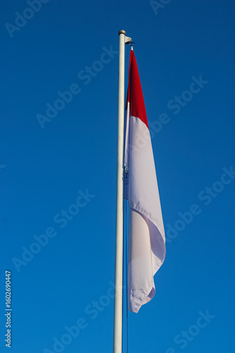 flag, indonesia, indonesian, national, symbol, red, white, country, nation, patriotism, patriotic, independence, freedom, blue skies, sky, clear, pole, flag pole, fabric, waving, fluttering, proud, celebration, culture, travel, tour tourism, icon, banner, identity, vertical, bright, sunny, clean, government, commonwealth, oneness, pride, landmark