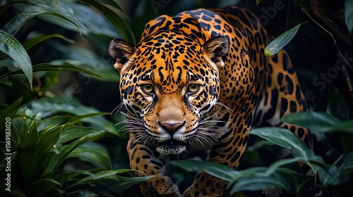 Majestic Jaguar Stalking Through Lush Rainforest Foliage