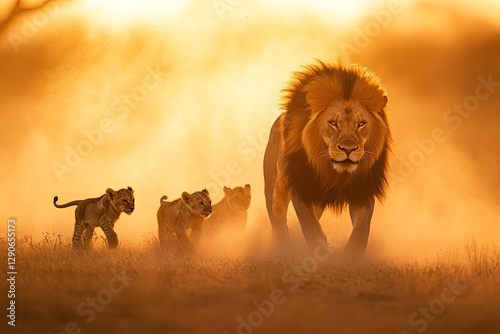 lion, sunset, strength, wildlife, family, gold, nature, playful, dust, safari, majestic, harmony, animal, pride, landscape, adventure, beauty, ferocity, scene, exploration, earth, creature, savanna, wilderness, freedom, power, journey, silhouette, warmth, oneness, natural, environment, dusk, grass-land, bond, captivating, fierce, calmness, roaring, enchanting, wild
