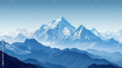 mountain, snow, blue, white, majestic, range, peak, clear, sky, size, shape, layer, serene, tranquil, atmosphere, perspective, distance, viewer, grandeur, scale, shade, grey, text, human, presence, natural, beauty, scene, mountain chain, blue skies, natural beauty