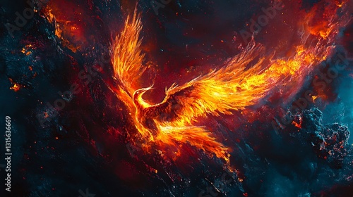 Majestic Phoenix Rising from Fiery Ashes in Digital Art