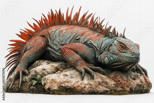 Majestic Red and Teal Iguana on Rock