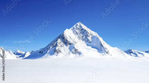 Majestic snow covered mountain under clear blue sky, showcasing nature beauty and tranquility