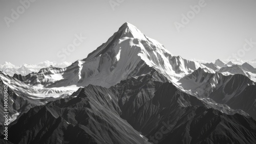 mountain, mountain chain, peak, snow, snow-capped, landscape, nature, scenery, wilderness, high altitude, monochrome, black-and-white, summit, hill, rock, cliff, vale, vista, panorama, view, aerial, drone, photo, travel, adventure, outdoors, expedition, majestic, dramatic, rugged
