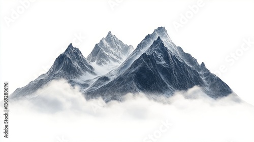 mountain, peak, snow, cloud, range, alps, hill, nature, landscape, scenery, vista, view, summit, rock, cliff, ice, glacier, winter, cold, sky, blue, white, grey, high, elevation, majestic, serene, tranquil, environment, wilderness, travel, adventure, exploration, photo, image, graphic, digital, art, illustration, background, scene, element, texture
