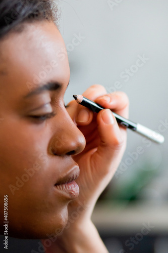 makeup artist works with young cute afro