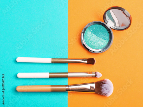 Makeup brushes and paints set are essential tools for a beauty artist's cosmetic color palette