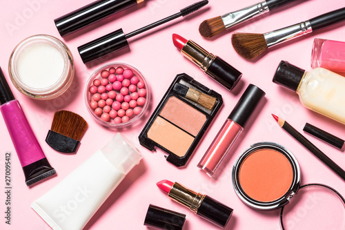 cosmetic, make-up, beautiful, beauty, background, pink, flat, lay, facial, decorative, up high, accessory, artist, bag, brush, care, copy, coral, cream, eye, fashion, fashionable, female, lipstick, mascara, natural, nobody, overhead, perfume, powder, present, professional, set, space, style, stylish, top, trendy, view, white, woman