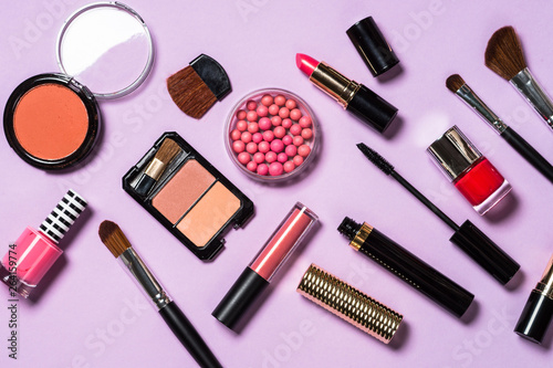 cosmetic, background, pink, flat, lay, make-up, up high, accessory, artist, beautiful, beauty, brush, care, casual attire, copy, coral, cream, decorative, eye, facial, fashion, fashionable, female, frame, lipstick, mascara, nail, natural, nobody, overhead, perfume, polish, powder, professional, purple, set, space, style, stylish, toned, top, trendy, view, violet, white, woman