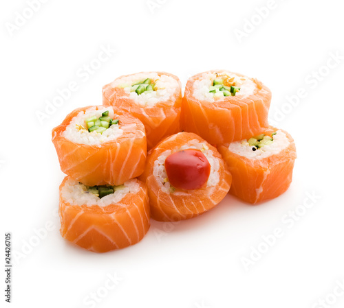 cream cheese, cucumber, asia, delicacy, delicious, dinner, eat, fish, food, fresh, epicure, japan, leaf, lunch, maki, meal, philadelphia, raw, rice, sake, salmon, seafood, seaweed, sesame, slice, snack, sushi, traditional, isolated, white background, nobody
