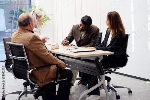 male business team Woman sitting in meeting planning marketing, business plan.