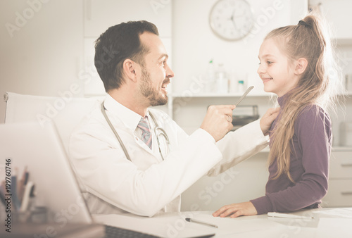 Male doctor and little girl